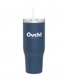 40 oz double wall 18/8 stainless steel thermal tumbler with copper vacuum insulation, stainless steel rim, dual-purpose push-on clear lid, matching sliding closure, flexible wide silicone straw, and powder coated finish