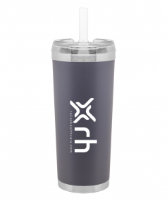 24 oz double wall 18/8 stainless steel thermal tumbler with copper vacuum insulation, stainless steel rim and base, threaded Eastman Tritan lid, snap closure, straw opening, and flexible wide silicone straw.