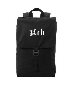 This Access Rucksack has a main compartment with a padded laptop panel. The laptop sleeve dimensions are 12"h x 11"w x 1"d, and fits most 15" laptops. There's a front zippered rucksack flap, and there's a luggage trolley pass through on the back. The Solid colors are 600D polyester canvas, and the Heather colors are 600D heather polyester. 17" H x 10.5" W x 5" D